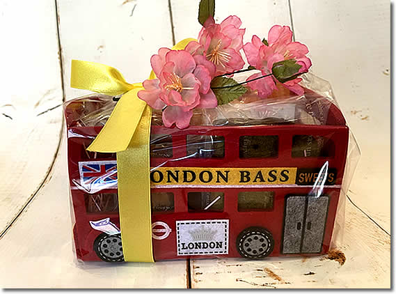ロンドンバスの可愛いデザインの入れ物に入っています。