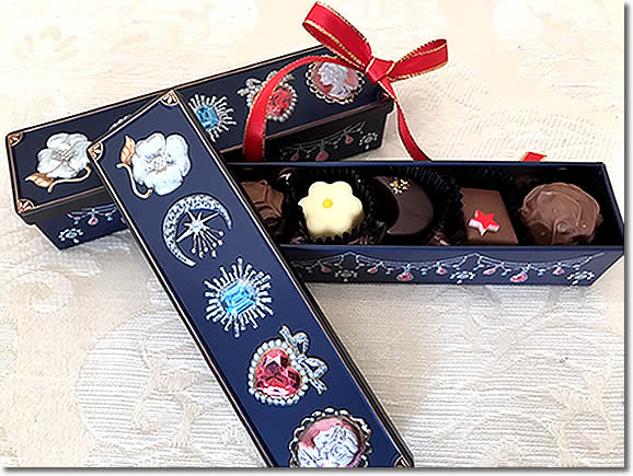 トリュフ2個入り は、箱のデザインが5種類あり、送る方のイメージに合わせて選んでいただけます。アンティーク感、あふれるデザインです