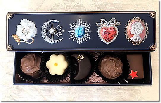 今回のチョコレートのテーマは星、月、花、地球と自然の調和を選んでいます。愛と調和を届けて下さい。