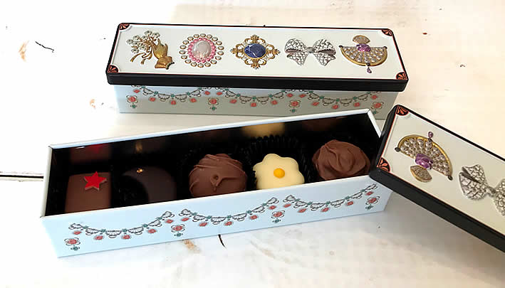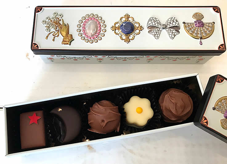 今回のチョコレートのテーマは地球の調和をイメージした星、月、花、地球の形をしたトリュフチョコの詰め合わせです。