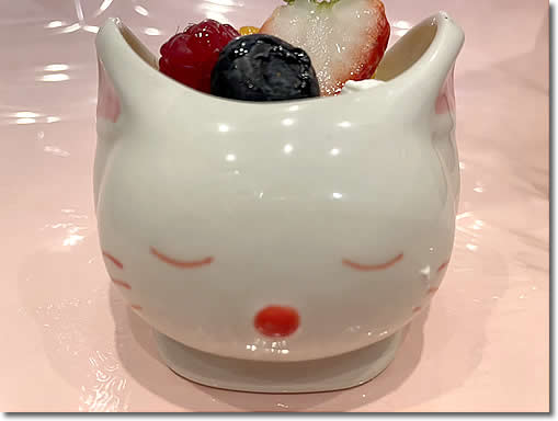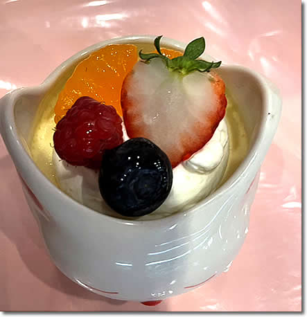 プリンの上にはフルーツがたくさんのっています。