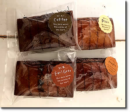 2.コーヒー、紅茶、プレーン、メープルの4種類の焼菓子